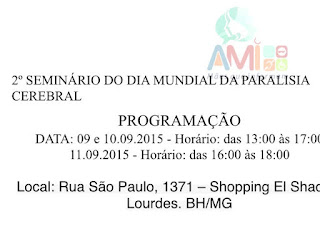 Estaremos representando a ABPC - Associação Brasileira de Paralisia Cerebral durante a programação, que aliás está muito interessante! Contando inclusiva com um desfile de modas!
